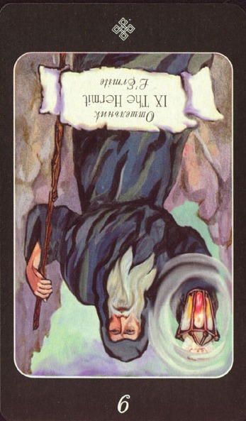 The Hermit carries the number 9. This is the highest base number. After 9 the composed numbers emerge. Therefore the number 9 is the gateway to a higher order. It is also a place to rest before embarking on the next leg of the journey.