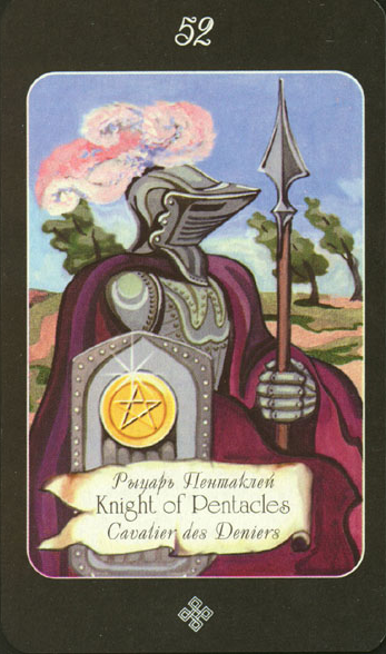 The Knight of Pentacles doesn't like to get worked up about anything. He prefers to make quiet steady progress by sticking to a persevering attitude, while not allowing himself to become exhausted or stressed.