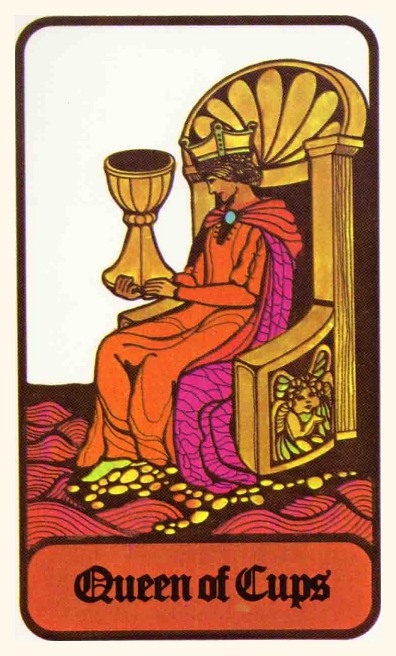 Queens and Cups are both somewhat turned inward. This might make whatever choice you're facing when this card falls, a deep one. Take your time, and don't let the issue overwhelm you or your emotions.