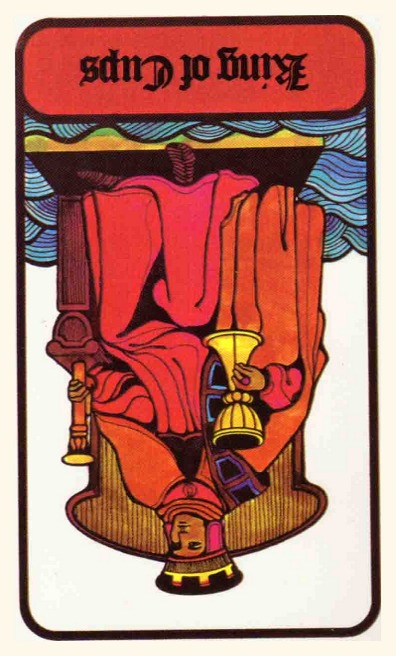The King of Cups uses his intuition to achieve his ideals. Since Cups are turned inward, and Kings turned to the outside world, this card might be a difficult one, or it could be a powerful one.