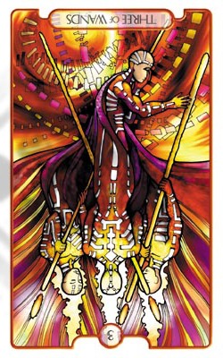 This card is about exposing your new ideas to the world. The Wand's element fire goes well with the number 3, as 3 is an output number, a number of results. Fire likes getting to results quickly.