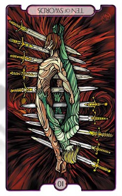 The 10 of Swords is about saying final goodbye to things or people that are bad to you.