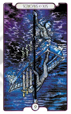 The 9 of Swords represents relief from cropped-up grief. The number 9 is a number of reward and rest and accomplishment. In the element of Swords there is not a lot of time for rest, but without any rest you'd just burn yourself out.