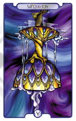 The number 1, associated with this Ace card, is the number of a fresh start with yet more new impulses coming your way. It might be compared to The Fool, the first card of the major arcana.