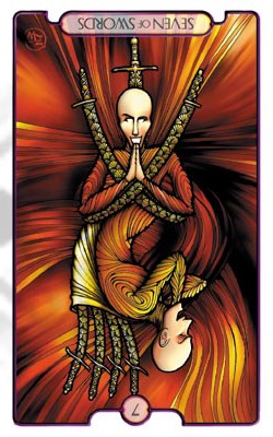 The 7 of Swords is about making slow progress because you can't trust the situation and/or people around you.