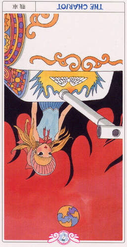 During the prevous card, The Lovers, all the wisdom of the first cards in the deck has been processed and a choice was made for personal growth. Now it's time to do something with all this baggage, to actually travel the road. A lot has been done so far, wisdoms have been accumulated and integrated into one's personality.