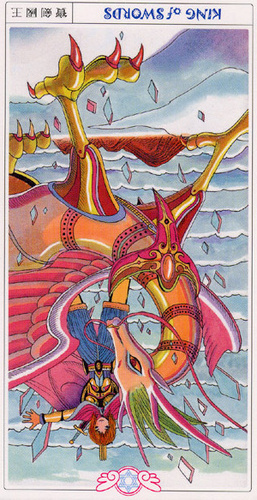The King of Swords rules with diplomacy and a strong sense of responsibility, not just for himself but also for those around him, yet he is not afraid to make heavy decisions that compel him to eliminate dangers and dangerous opponents with some force.