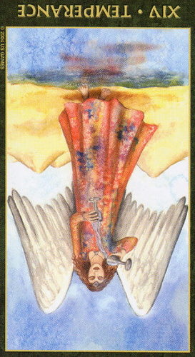 With Death, an important decision made with The Hanged Man was given shape by letting go of the old. Now you're in a transitionary period and this Temperance card is a place of rest during the journey through the underworld.