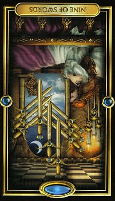 The 9 of Swords represents relief from cropped-up grief. The number 9 is a number of reward and rest and accomplishment. In the element of Swords there is not a lot of time for rest, but without any rest you'd just burn yourself out.