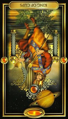 The King of Cups uses his intuition to achieve his ideals. Since Cups are turned inward, and Kings turned to the outside world, this card might be a difficult one, or it could be a powerful one.