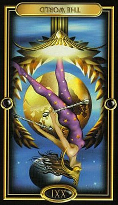This card falls when you've completed all assignments, overcome all obstacles and are completely at peace with yourself due to your accomplishments. Yet Tarot wouldn't be Tarot if it didn't challenge you to enter entirely new worlds and start the process all over again.