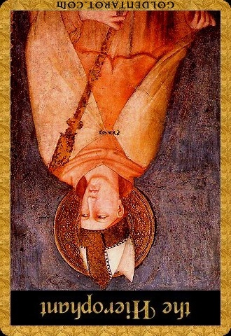 Where The Emperor is the chief of worldly power, The Hierophant is the head of spiritual matters.