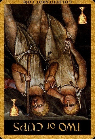 This the first assignment number of the Cups suit. Unlike Wands, with the Fire element, Cups, with the water element, has a lot more patience. Water is by nature more introspective, and this second card in the Cups suit is indeed about exploring yourself. The outcome is uncertain as always, but it usually results in better acceptance of yourself.