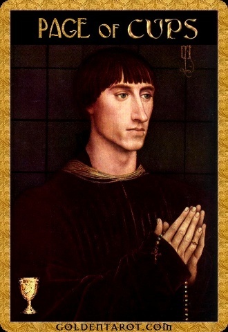 The Page of Cups is about cautiously exploring your own emotions (about the course ahead).
