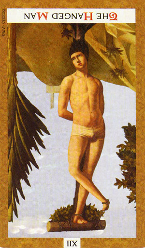 First you learned that you're not a plaything of fate, that you can make your own choices. Then you've learned how to fend for yourself and face yourself. Now, at The Hanged Man, you can learn to let go. You no longer have to cling to old values. You've found strength in yourself and by letting go, you allow growth.