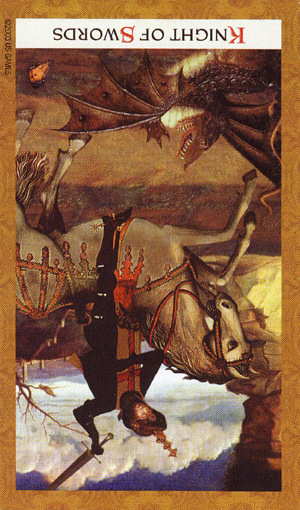 The Knight of Swords lacks the naivety of the Knight of Wands, he has analyzed the terrain ahead and weighed his options there. He knows what his own nature can throw into the mix, but does not let himself be held idle by that. The activities ahead will likely include the solving of conflicts and problems on your road to your ideal.