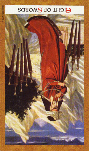 The 8 of Swords is about slowly regaining strength and energy. The 8 is an assignment number, and in the element of Swords it's a bit harder than usual.