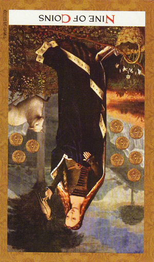 The 9 of Pentacles represents earned rest. The element Earth, attached to the Pentacles suit, appreciates the rest that completion of hard work brings. This is a good time for games and relaxation.