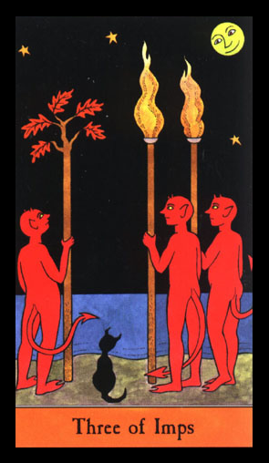 This card is about exposing your new ideas to the world. The Wand's element fire goes well with the number 3, as 3 is an output number, a number of results. Fire likes getting to results quickly.