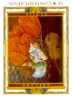 The Hermit carries the number 9. This is the highest base number. After 9 the composed numbers emerge. Therefore the number 9 is the gateway to a higher order. It is also a place to rest before embarking on the next leg of the journey.