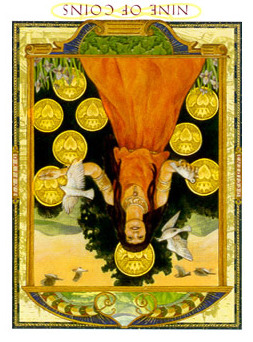 The 9 of Pentacles represents earned rest. The element Earth, attached to the Pentacles suit, appreciates the rest that completion of hard work brings. This is a good time for games and relaxation.