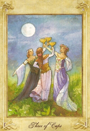 The 3 of Cups represents hope, faith and love. The 3 is a reward number and in this suit of Cups your feelings during that number will be that of joy and self-contentment.