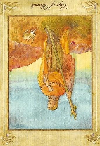 The Hermit shuts out the world and retreats into solitude to better understand some spiritual aspect of life. He opens to the cosmos and lets it's wisdom sink in. Hermits are often seen as wise old men who can guide a traveller along a journey.