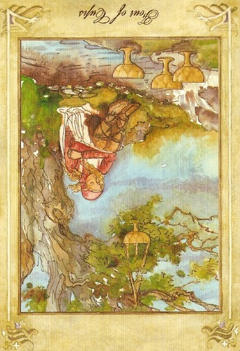 With the 4, the second cycle of this suit is commenced, where a choice between structure and feeling has to be made, where old securities have to be let go of to work towards a new future. But like Wands, Cups don't like structure much, they prefer to be free and dream rather than to make commitments and go for something.