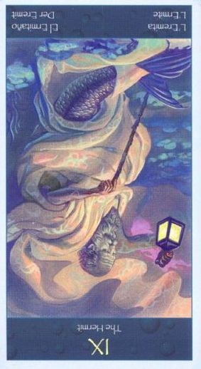 The Hermit carries the number 9. This is the highest base number. After 9 the composed numbers emerge. Therefore the number 9 is the gateway to a higher order. It is also a place to rest before embarking on the next leg of the journey.