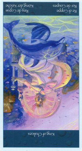 The King of Cups uses his intuition to achieve his ideals. Since Cups are turned inward, and Kings turned to the outside world, this card might be a difficult one, or it could be a powerful one.