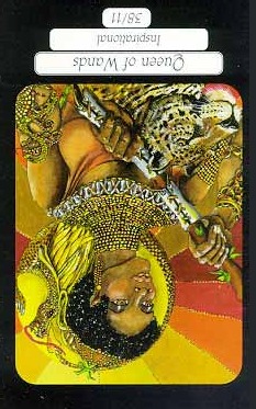 The Queen of Wands is drawn when you (have to) become more aware of the properties of the Wands suit; vitality, optimism and enthousiasm.