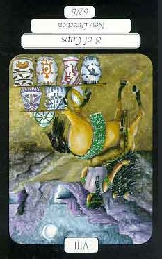 8 is an assignment number, and in the suit of Cups, it is about overcoming the urge to sink into depression caused by view on the long road ahead.