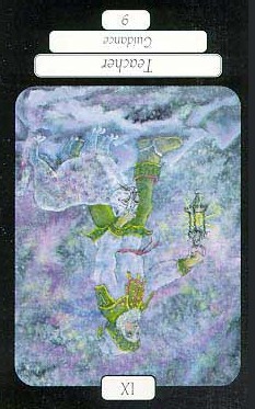 The Hermit carries the number 9. This is the highest base number. After 9 the composed numbers emerge. Therefore the number 9 is the gateway to a higher order. It is also a place to rest before embarking on the next leg of the journey.