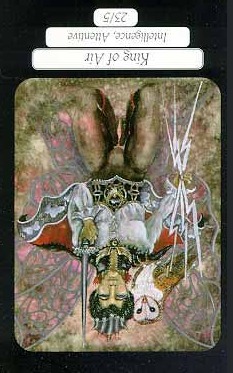 The King of Swords rules with diplomacy and a strong sense of responsibility, not just for himself but also for those around him, yet he is not afraid to make heavy decisions that compel him to eliminate dangers and dangerous opponents with some force.