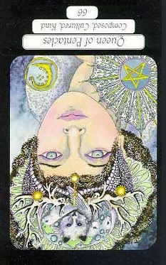 The Queen in the suit of Pentacles becomes aware of her Earthly attributes; she's reliable and sober, able to give good advice.