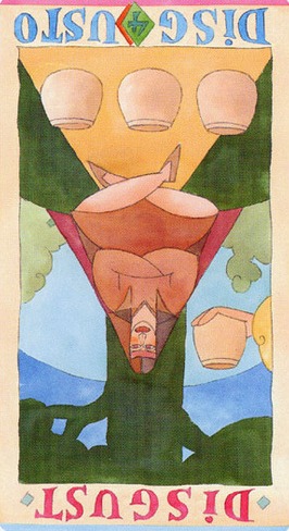 With the 4, the second cycle of this suit is commenced, where a choice between structure and feeling has to be made, where old securities have to be let go of to work towards a new future. But like Wands, Cups don't like structure much, they prefer to be free and dream rather than to make commitments and go for something.