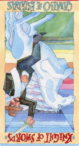 The Knight of Swords lacks the naivety of the Knight of Wands, he has analyzed the terrain ahead and weighed his options there. He knows what his own nature can throw into the mix, but does not let himself be held idle by that. The activities ahead will likely include the solving of conflicts and problems on your road to your ideal.