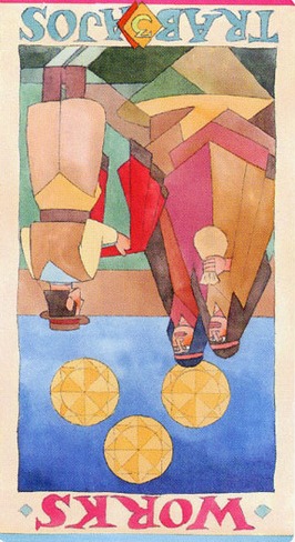 Pages explore and gather information about the road ahead, with an almost naive attitude. The Page of Pentacles is sometimes described as a bridge builder; Pentacles is the suit where the actual work is done, and the Page here enables those that follow to quickly cross difficult terrain.
