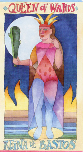 The Queen of Wands is drawn when you (have to) become more aware of the properties of the Wands suit; vitality, optimism and enthousiasm.