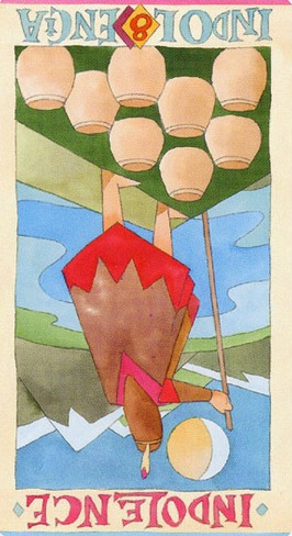 8 is an assignment number, and in the suit of Cups, it is about overcoming the urge to sink into depression caused by view on the long road ahead.