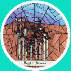 The 8 of Swords is about slowly regaining strength and energy. The 8 is an assignment number, and in the element of Swords it's a bit harder than usual.