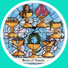 The 7 of Cups is about making a choice between different ideals. But Cups, with the water element, don't like making definitive choices that much, making this 7 in this suit a bit of a hard choice.