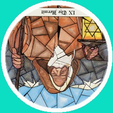 The Hermit shuts out the world and retreats into solitude to better understand some spiritual aspect of life. He opens to the cosmos and lets it's wisdom sink in. Hermits are often seen as wise old men who can guide a traveller along a journey.