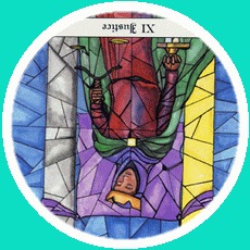 This card carries the number 11. In the Rider-Waite deck, Strength and Justice have swapped places because Waite saw links with the astrological signs Leo and Libra.