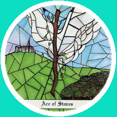 The ace of wands represents the beginning of an idea. The element fire and the number 1 give a powerful combination: enterprise and new beginnings apply to both. This is an energetic combination, which is why the card is generally considered a positive one. Spring is the season associated with this card.