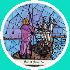 The 6 of Swords is a reward number after the hard assignment in 5 of Swords, it brings you to a safe place to rest a bit.