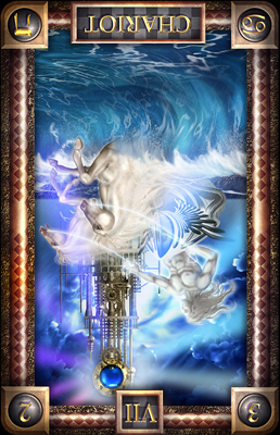 During the prevous card, The Lovers, all the wisdom of the first cards in the deck has been processed and a choice was made for personal growth. Now it's time to do something with all this baggage, to actually travel the road. A lot has been done so far, wisdoms have been accumulated and integrated into one's personality.
