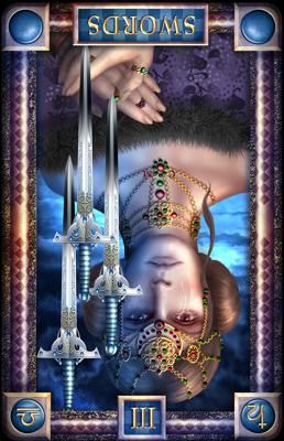 This card is about exposing your new ideas to the world. The Wand's element fire goes well with the number 3, as 3 is an output number, a number of results. Fire likes getting to results quickly.