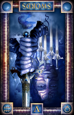 The 5 of Swords is about facing reality. The 5 is an assignment number, and in the slighly more difficult suit of Swords, it means you face a difficult challenge where your past experiences could hold you down.