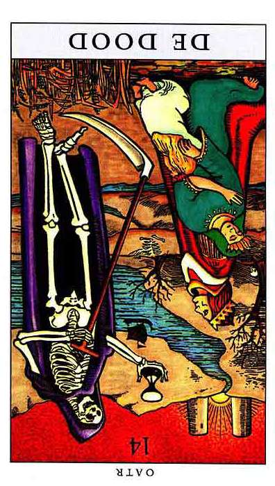 If a card is upside down, that is the common notation for the opposite meaning of the card, also known as the "negative" or "reversed" meaning of the card.